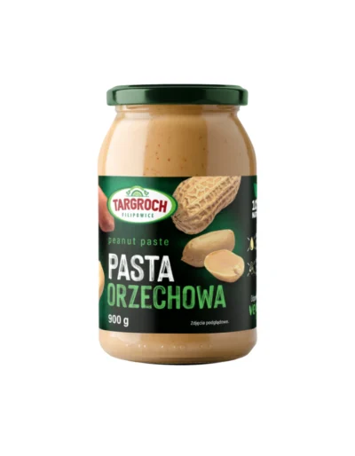 Pasta z orzechów arachidowych (masło orzechowe) – klasyka wśród past. Naturalne źródło białka, zdrowych tłuszczów i witamin z grupy B. Idealna do smarowania pieczywa, owsianek, smoothie czy wypieków.