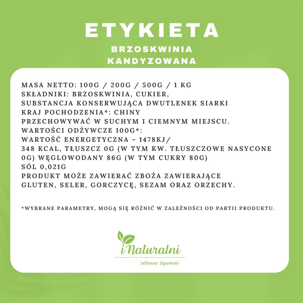 Odkryj słodki i soczysty smak kandyzowanej brzoskwini, która łączy w sobie naturalną słodycz owocu z przyjemnym akcentem kandyzowania. To doskonały wybór dla każdego, kto szuka wyjątkowej przekąski lub oryginalnego dodatku do deserów, który z pewnością urozmaici każdy posiłek i doda mu odrobiny słodkiego, owocowego blasku.