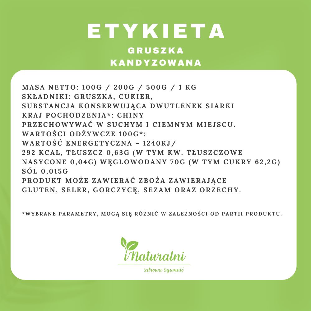 ✔️Źródło błonnika: Mimo procesu kandyzowania, gruszki zachowują część swojej pierwotnej zawartości błonnika, który jest kluczowy dla prawidłowego funkcjonowania układu trawiennego.