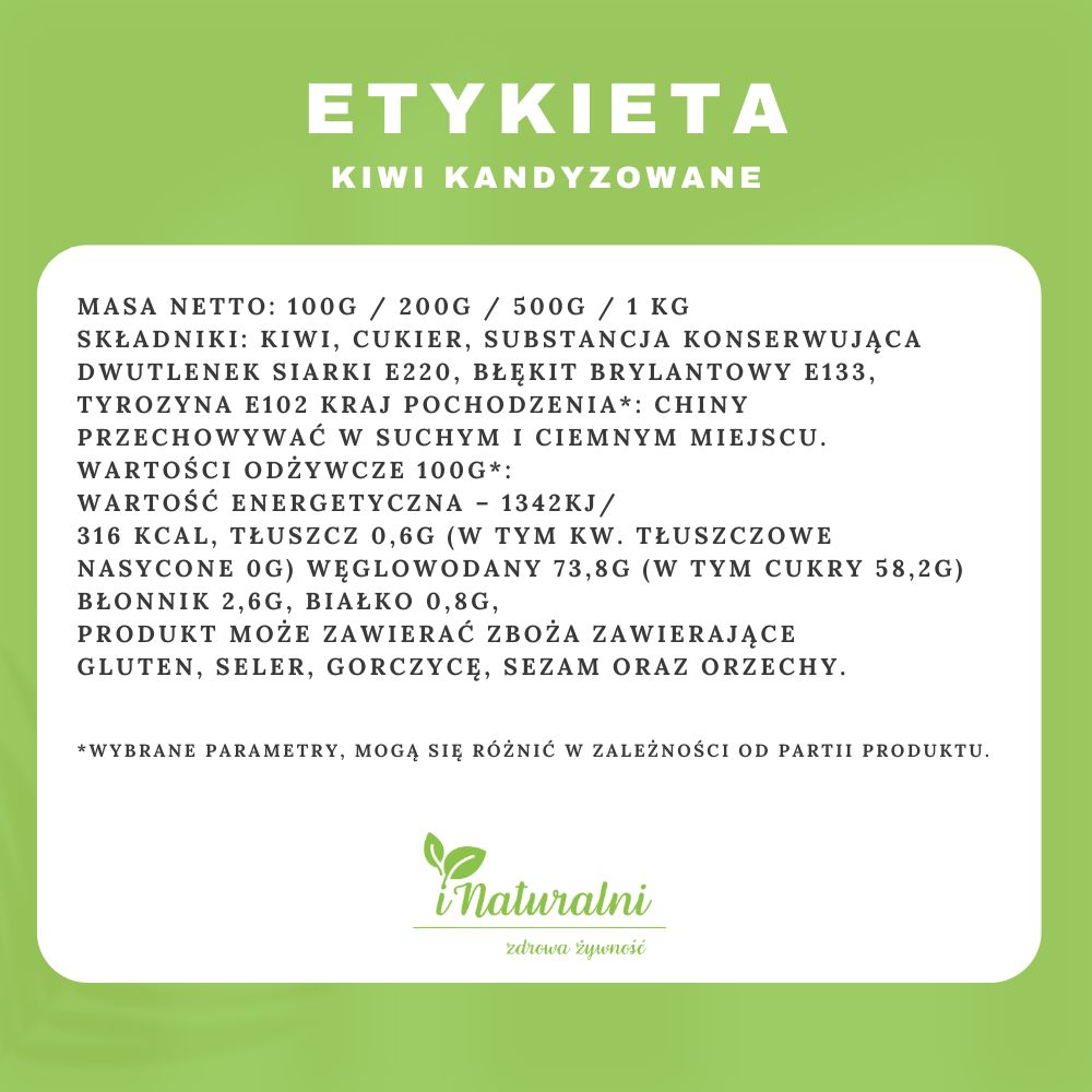To prawdziwy rarytas dla wszystkich, którzy cenią sobie wyjątkowe i egzotyczne smaki. Ten słodko-kwaśny przysmak nie tylko zaspokoi Twoje kulinarne pragnienia, ale także doda kreatywnego akcentu do wielu potraw. Dzięki swojej wszechstronności, kandyzowane kiwi sprawdzi się jako energetyzująca przekąska, ekscytujący dodatek do śniadaniowych musli, jogurtów, a także jako ozdoba i smakowy twist w deserach i wypiekach. Jego intensywny smak i kuszący aromat wzbogacą każdą kuchnię, a bogactwo witamin uczyni go zdrowym wyborem dla całej rodziny.