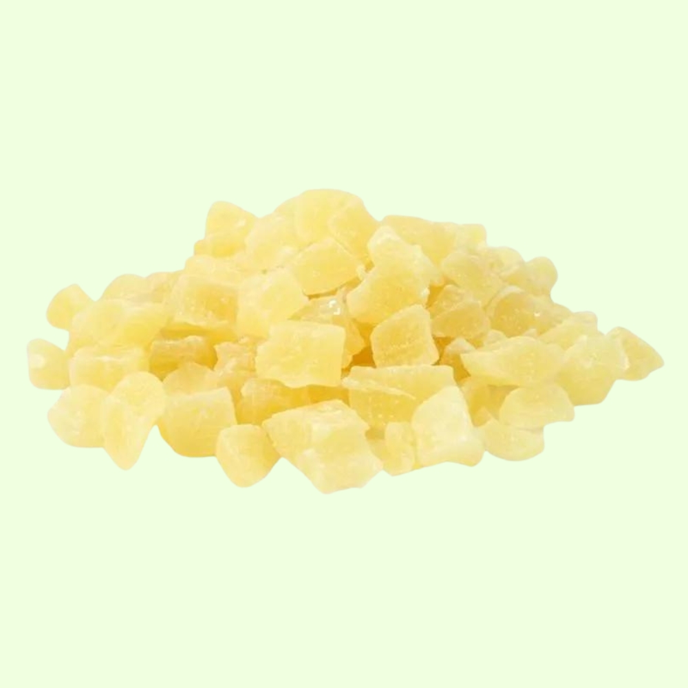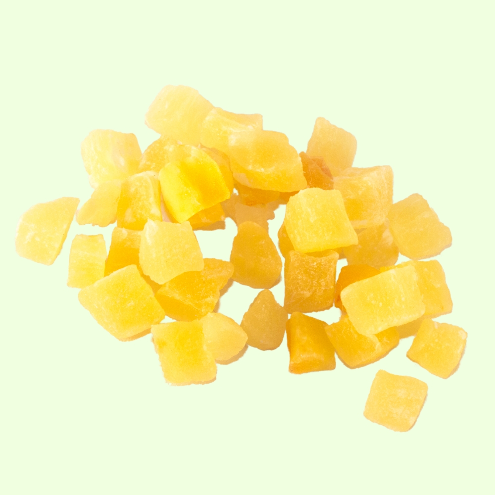 Odkryj wyjątkowy smak naszego ananasa kandyzowanego w kostkach, który przeniesie Cię wprost do słonecznych, tropikalnych krain! Nasz ananas kandyzowany to idealna harmonia słodyczy i intensywnego owocowego aromatu, która sprawia, że jest to doskonała przekąska w każdej chwili. Nie tylko zadowoli Twoje podniebienie jako samodzielny smakołyk, ale również doda egzotycznego twistu do Twoich deserów, ciast i koktajli.