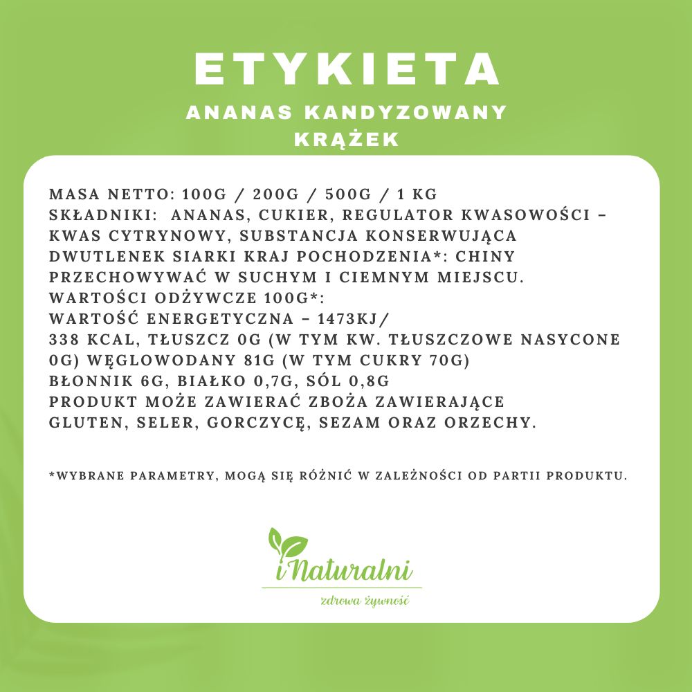 Ananas kandyzowany to przysmak, który zachwyci każdego smakosza! Jest nie tylko niezwykle smaczny, ale także dostarcza słodkiego, tropikalnego smaku, idealnego na każdą okazję. Jego bogaty, intensywny aromat i słodycz sprawiają, że jest doskonałym dodatkiem do wielu deserów, sałatek owocowych czy nawet jako samodzielna, pyszna przekąska. Pozwól sobie na odrobinę luksusu z naszym kandyzowanym ananasem – gwarantujemy, że jego wyjątkowy smak przeniesie Cię wprost na słoneczne plaże!
