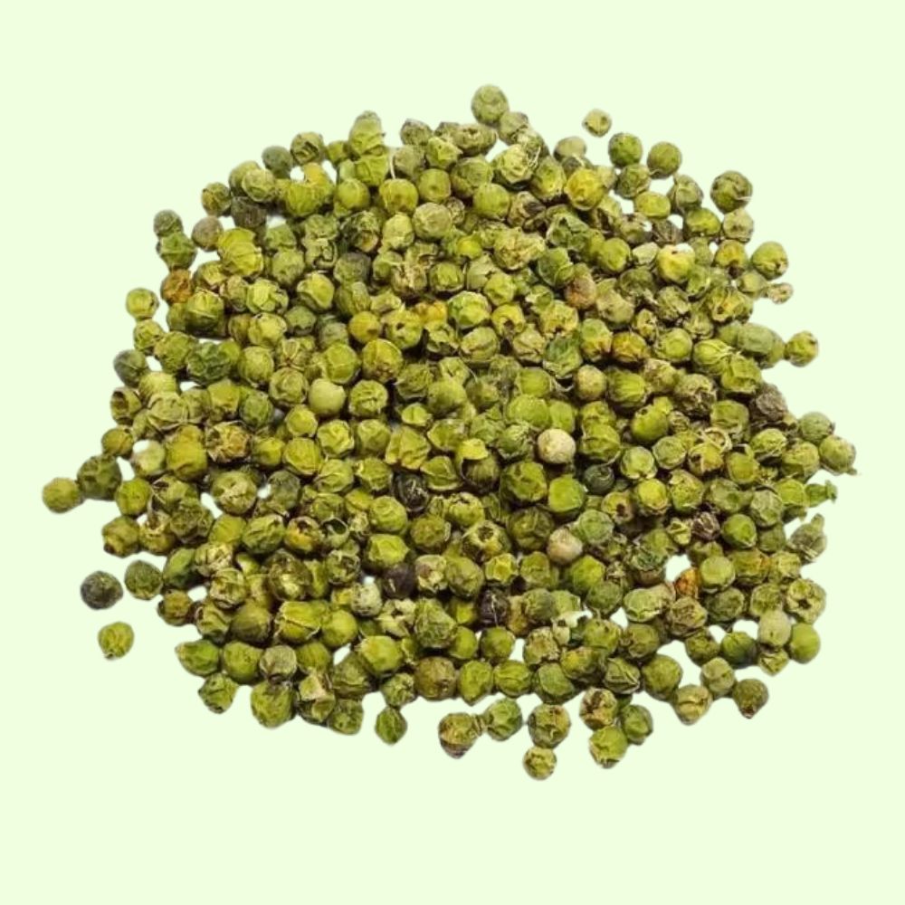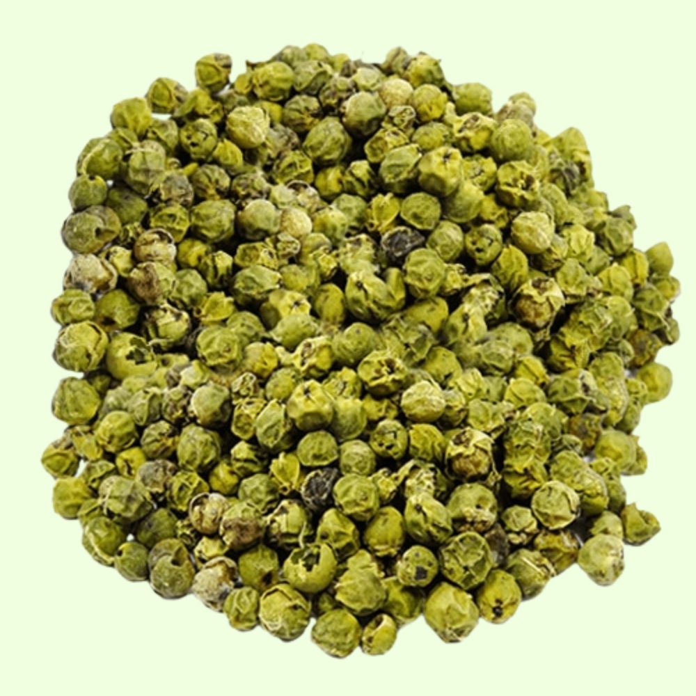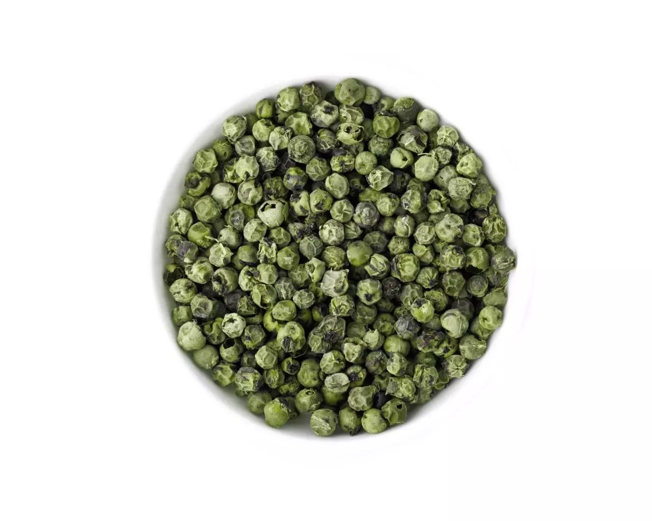 Charakterystyka: Pieprz zielony to unikalna przyprawa, która pochodzi z niedojrzałych owoców pnącza pieprzowego. Jest zbierany, zanim jagody pieprzu dojrzeją, a następnie poddawany suszeniu lub marynowaniu, aby zachować jego jasnozielony kolor i delikatny smak. W przeciwieństwie do pieprzu czarnego, zielony pieprz ma subtelniejszą pikantność i świeży, lekko ziołowy aromat, który dodaje potrawom wyjątkowego charakteru.