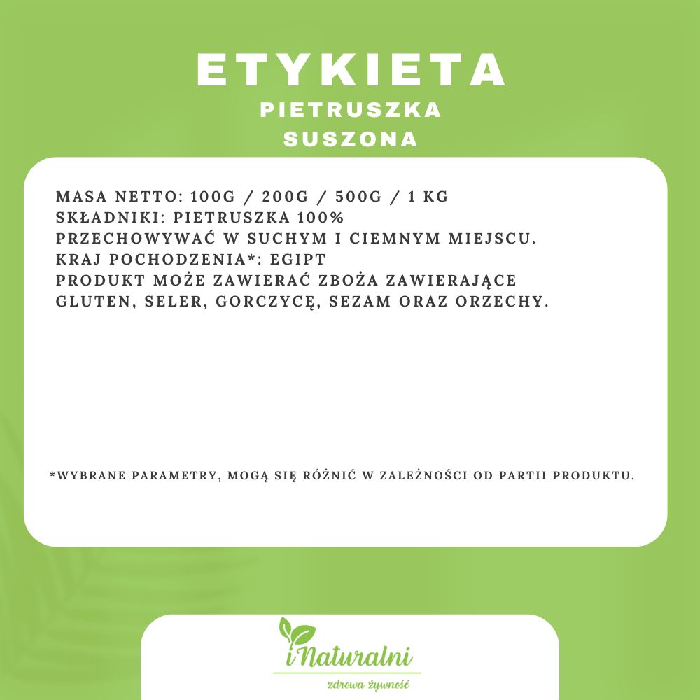 Charakterystyka: Pietruszka suszona to nieodzowny składnik w każdej kuchni. Dzięki procesowi suszenia, pietruszka zachowuje swoje naturalne właściwości, a jednocześnie staje się łatwa w przechowywaniu i użyciu. Charakteryzuje się intensywnym, świeżym aromatem oraz delikatnym, ziołowym smakiem, który doskonale wzbogaca różnorodne potrawy. Jest to idealny sposób na dodanie smaku i koloru do potraw przez cały rok.