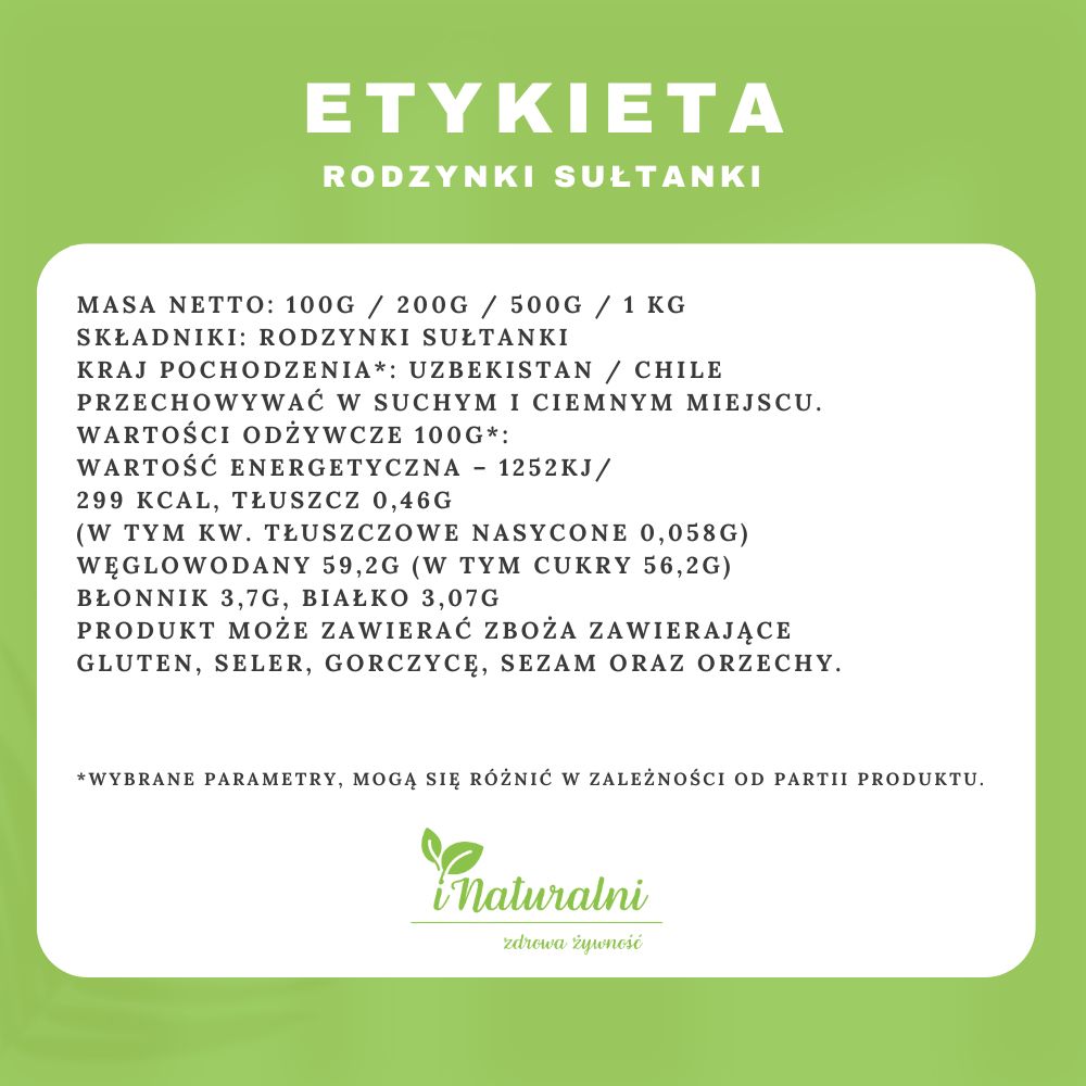 🍇 Naturalna Słodycz: Rodzynki sułtanki charakteryzują się naturalną słodyczą, która sprawia, że są idealnym dodatkiem do różnych potraw oraz zdrową przekąską na co dzień.