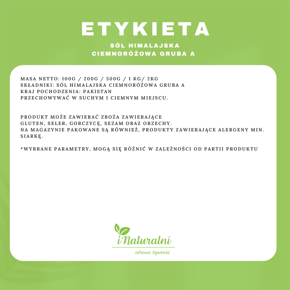 | Nazwa produktu | Sól Himalajska Różowa Gruba |