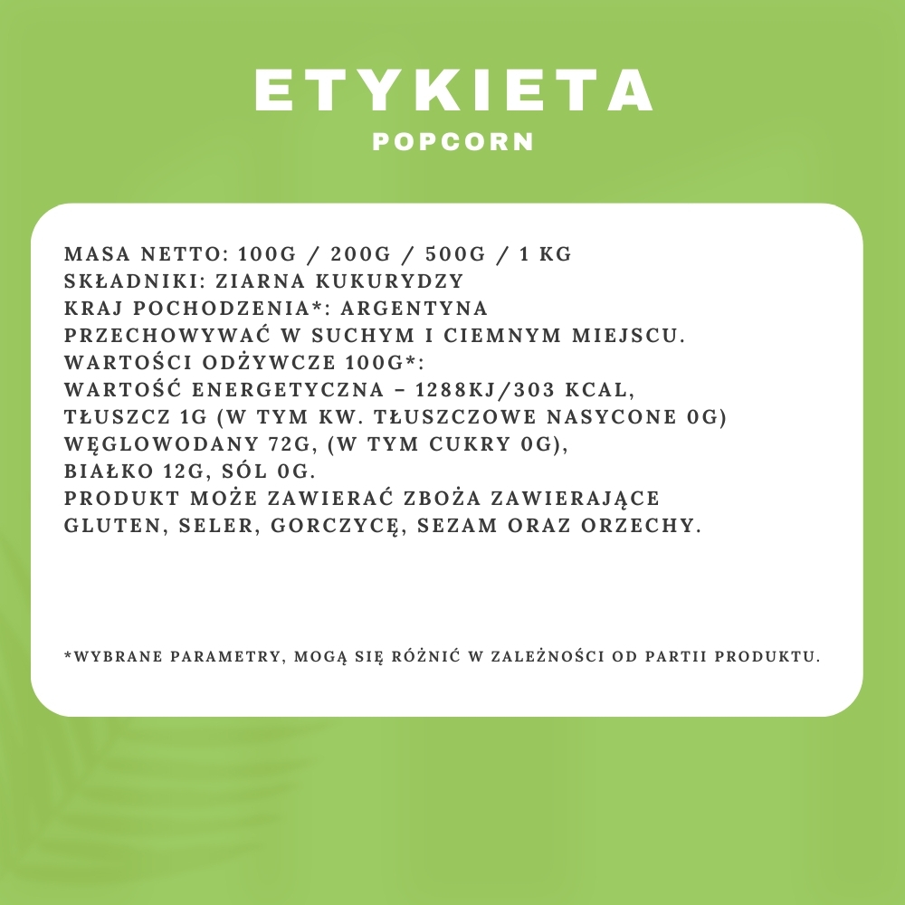 Nasze ziarna popcornu to doskonały wybór dla wszystkich, którzy pragną cieszyć się pyszną, chrupiącą i zdrową przekąską w domowym zaciszu. Wysokiej jakości, starannie wyselekcjonowane ziarna gwarantują wspaniały smak i pełne ziarna przy każdym wystrzale.